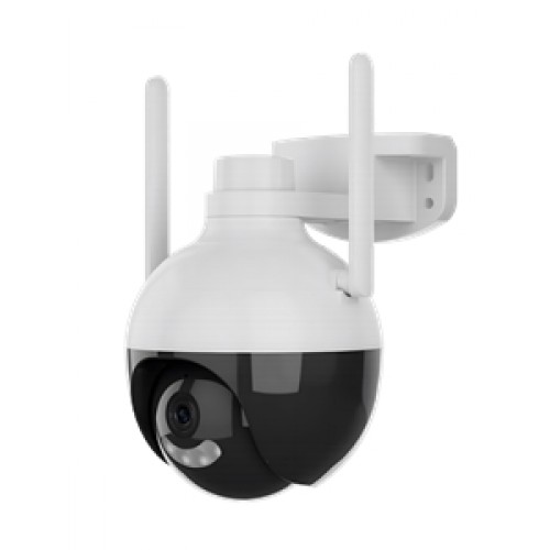 Cámara de videovigilancia para exteriores motorizada con conexión Wifi y resolución de 4MP ULTRA HD. Incorpora luz led, sirena, altavoz, función habla-escucha, sensor de movimiento, filtro humano, seguimiento automático con rotación de 355º, protocolo ONVIF.