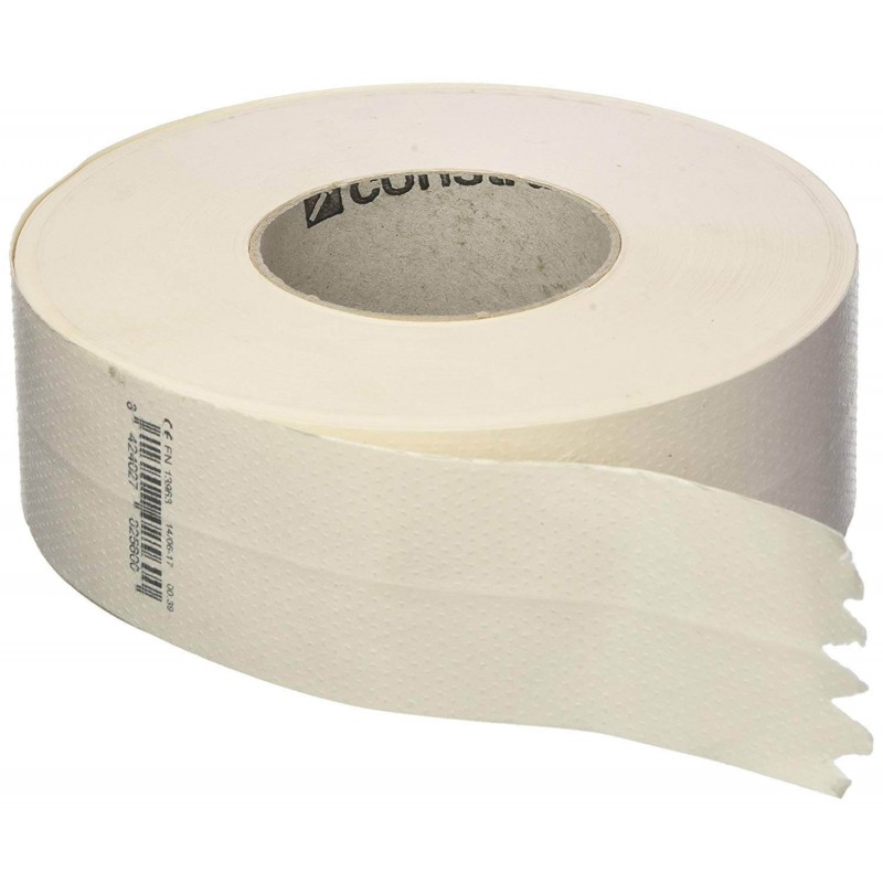 Rollo de cinta de papel kraft con fibras anti-humedad ideal para la protección de las uniones de las placas de yeso, permite un acabado continuo y liso en las esquinas y cantos.